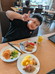2日目朝の食事は,バイキングです。元気に朝食を食べていました。