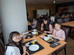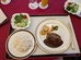 夕食がはじまりました!ナイフとフォークに苦戦しています。箸のほうが使いやすそうです。