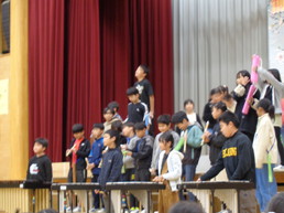 150周年記念式典後、第2部で児童発表会が行われました。子どもたちは、緊張しながらも練習の成果を十分に発揮し、心を合わせて歌ったり演奏したりすることができました。どの学年の発表も音楽の楽しさや素晴らしさが伝わる素敵な発表になりました。また、最後の全校合唱「世界に一つだけの花」は、子どもたちの思いが歌声に乗り会場の皆様に届いたのではないでしょうか。保護者の皆様、地域の方々からあたたかい拍手やメッセージをたくさんいただきました。本当に、ありがとうございました。