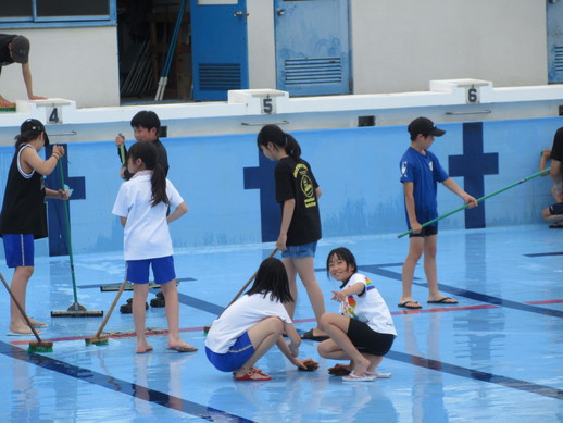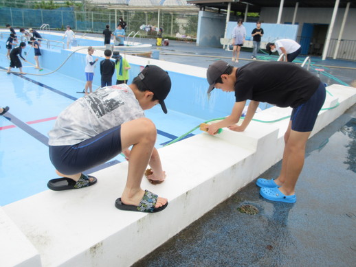 当日は雲が立ち込めていて少し肌寒く、決してプール清掃日和ではありませんでしたが、5年生も6年生は、自分たちや下級生が入るプールを一生懸命にきれいにしてくれました。高学年の自覚をもって働いていてくれた5・6年生の姿は、きれいになったプール以上にキラキラ輝き、これまで以上に頼もしく感じられました。