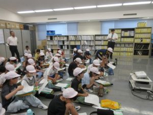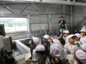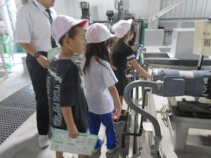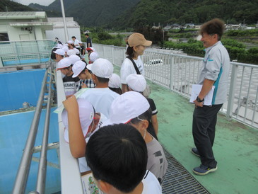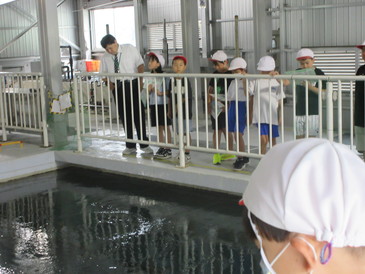 6月23日、4年生が駒場浄水場へ校外学習に出かけました。この学習の目的は、私たちが普段飲んでいる水道水が、どのようにして家庭や学校に届けられているのかを学ぶことです。浄水場では、まず、御勅使川から取り入れられた水が、どのようにきれいになっていくのか職員の方の説明を聞きながら見学しました。最初に濁っていた川の水が、いろいろな過程を進みながら透き通るきれいな水になっていく様子に、子どもたちは皆、興味津々でした。水の変化を目の当たりにし、その技術に驚きの声が上がっていました。子どもたちは、厳しい基準をクリアするために働いている人たちが努力し続けているかこそ、安全でおいしい水道水を飲むことができることに気づきました。