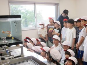 特に子どもたちの目を引いたのは、私たちの安全を守る金魚の存在でした。駒場浄水場では、川の水の安全性を最終的に確認するため、なんと金魚を飼育しています。このユニークな方法に、子どもたちは「なぜ金魚なの?」「金魚がどうやって教えてくれるの?」と、次々と質問を投げかけ、水の安全を守るための工夫に感心している様子でした。