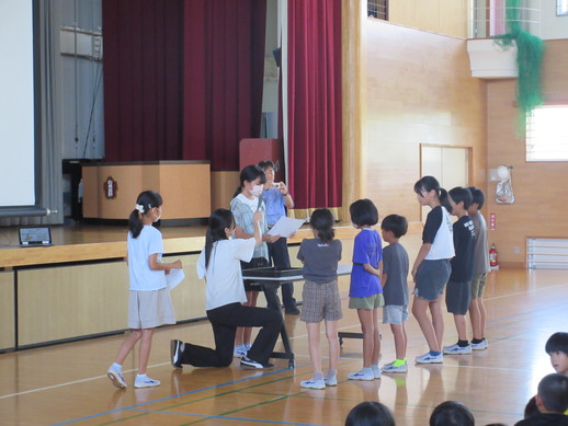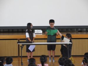 終業式では、5年生の代表児童が1学期の思い出と夏休みに楽しみなことを発表してくれました。2人とも、林間学校での思い出を生き生きと語り、学年全体で協力して活動をやり遂げたことに大きな達成感と充実感を感じているようでした。