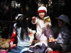 仲よく遊具で遊んだ後は、楽しみにしていたお弁当タイム。友だちみんなと一緒に外で食べるお弁当は格別!とてもおいしそうに頬張る姿が見られました。