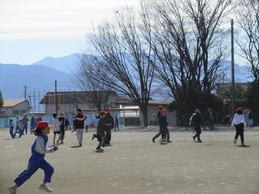 上級生が下級生を気遣ったり、みんなで必死に逃げ切ろうとしたりと、寒さを忘れて交流を深めることができました。元気よく走る全校児童の姿に、見守る教職員の心も温まる素敵なひとときとなりました。